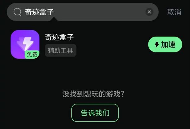 2、小伙伴们可先在奇游内搜索【奇迹盒子】,加速并进行下载~