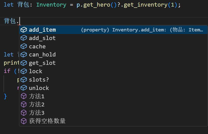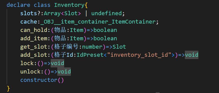 接下来是第二种方法,直接定义物品栏的成员函数,好处是可以和原生的方法一样直接选用,缺点是添加比较麻烦,希望以后拓展方法可以加起来更简单点