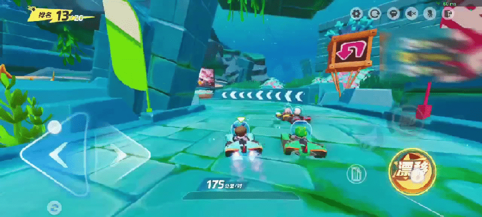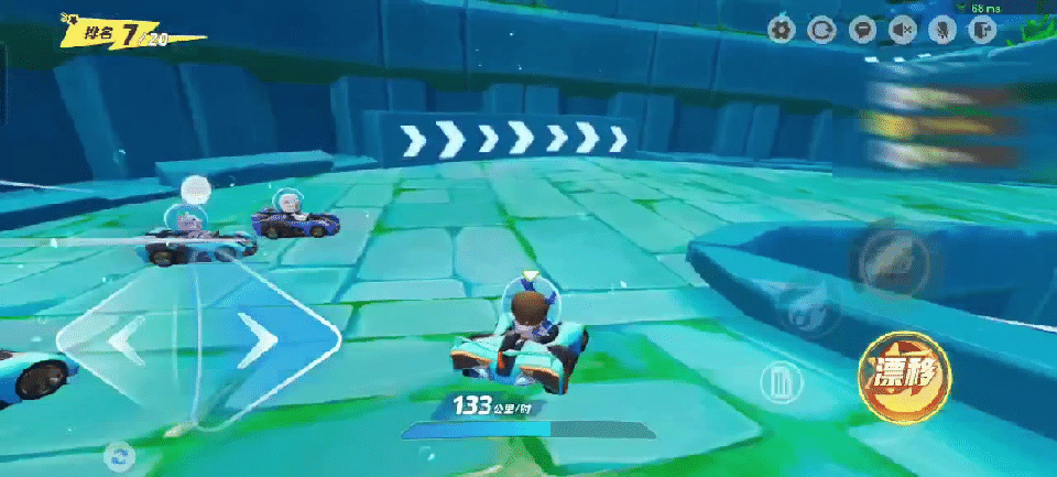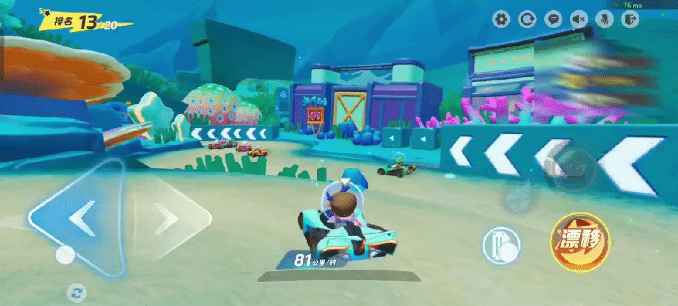 回忆已经通过的路段,相信细心的小星宝已经发现啦,在这张地图中有大量的S型和小直角弯道。对于此类角度不大的弯道,星宝们只需在车身贴近弯道时轻点漂移按钮,配合方向键拉动车身过弯即可,漂移太猛、转动角度过大可是会撞墙减速哦!