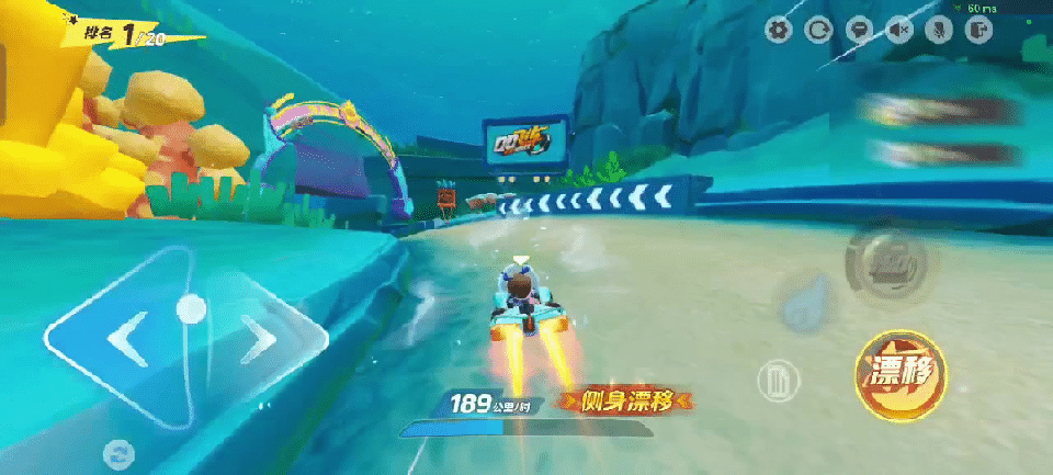 冲出准备区,开局就是一个直接点击蓝色小喷键加速,轻按漂移配合左拉方向键完美过弯,打出漂亮的车技-侧身漂移!漂移成功还会积攒出金色的氮气加速大喷,按下氮气键就能轻松拉开对手一大截啦~