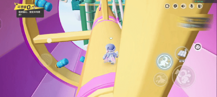 再次到达新的平台后,星宝们就可以迎接最后的挑战啦!第五道障碍关卡是一片由空缺的滚筒片组成的区域,一不留神就可能会踩空。星宝们可以利用滚筒上的小型加速器加速冲过黄色滚筒连接处,再看准时机等旋转风车的扇叶转过,一鼓作气冲向终点!