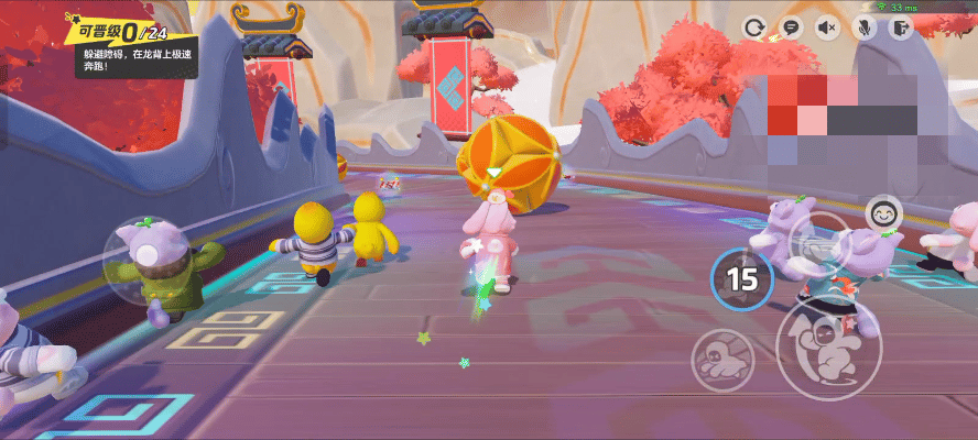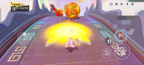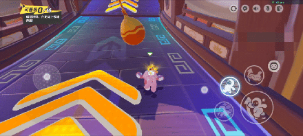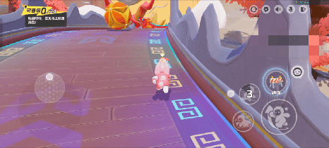 将礼炮甩在身后,迎面等着我们的是傲立云中的金红大鼓~从弹床上一跃而起飞入云端,落在大鼓上,踩上黄色加速带继续前进,躲开滚动的绣球,胜利就在不远处!