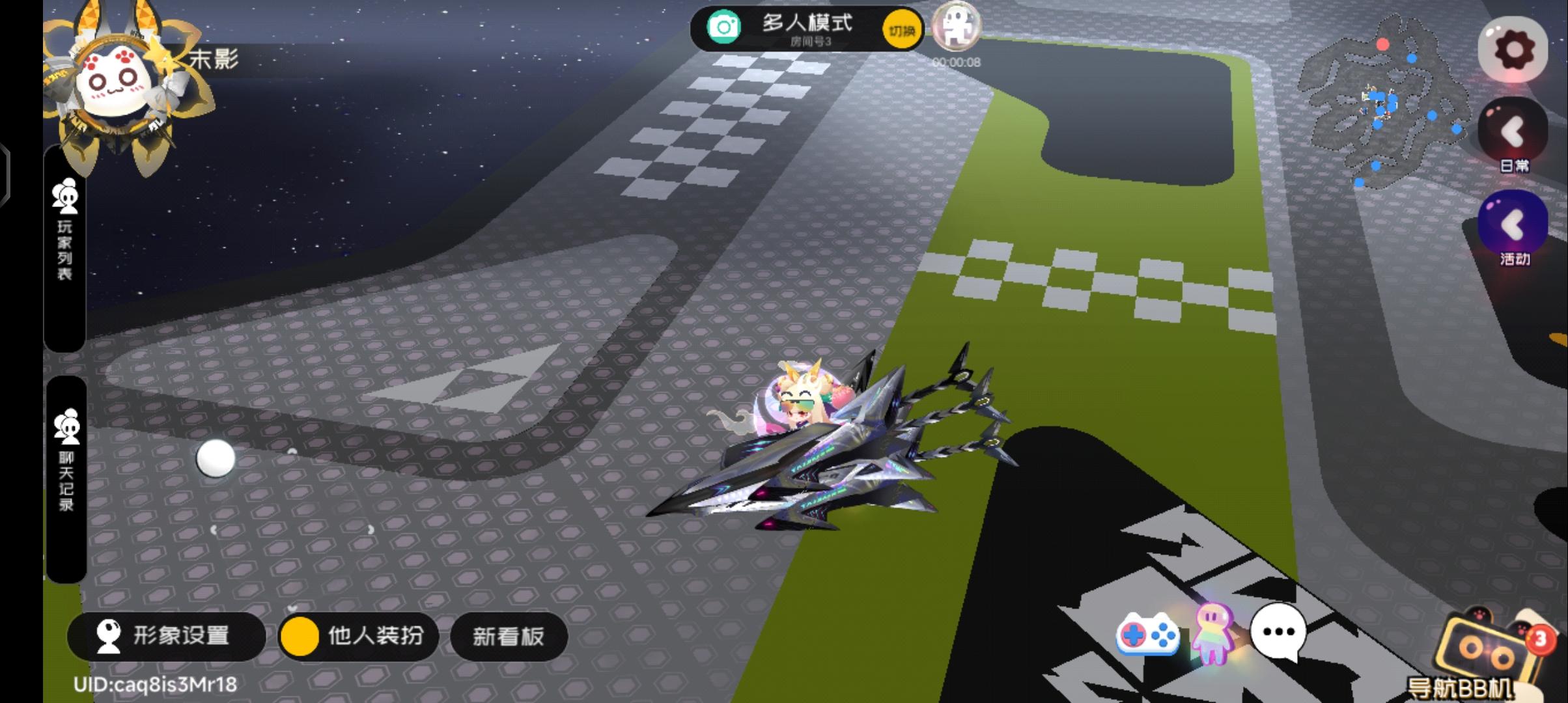 介于这次活动有加速跑内容,就试着把联机给的装扮拿来凑了个伪跑车。(主要是为了防止部分装扮大伙没有