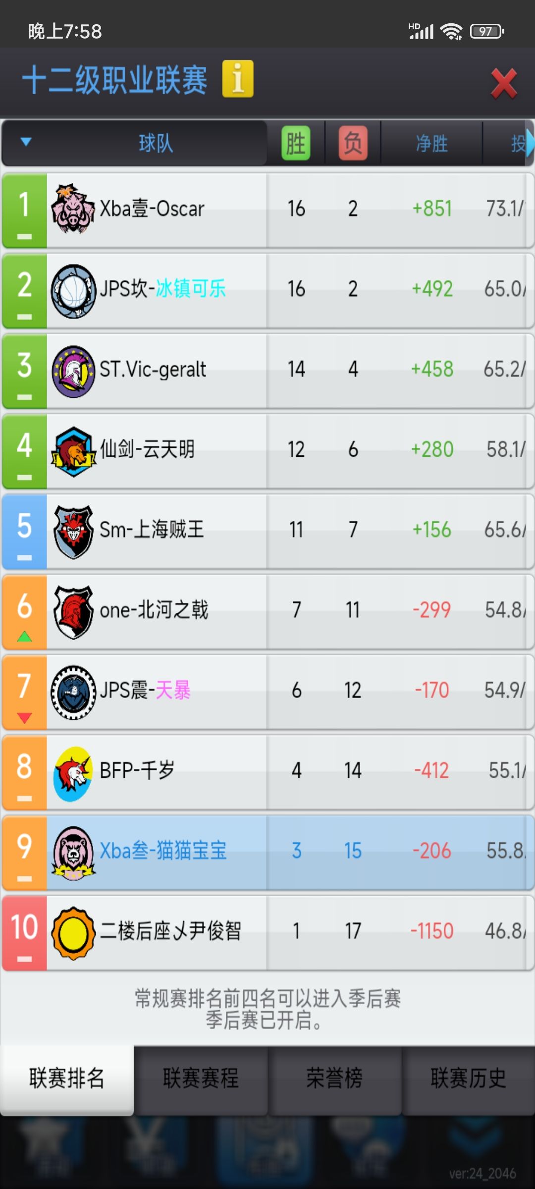 112赛季 联赛倒数第二,干掉第六名,成功保级