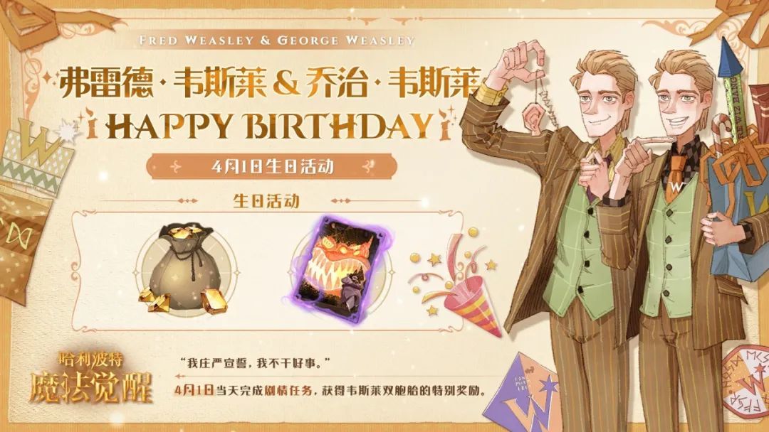 祝「弗雷德 · 韦斯莱」和「乔治 · 韦斯莱」生日快乐!
