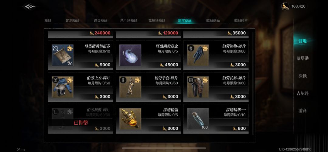 4️⃣地牢商店:每3000蜡炬可换取伯劳藏品1片