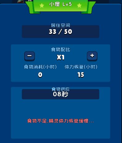 如果食物类型的材料充足,则精灵们的体力恢复速度将会加快;