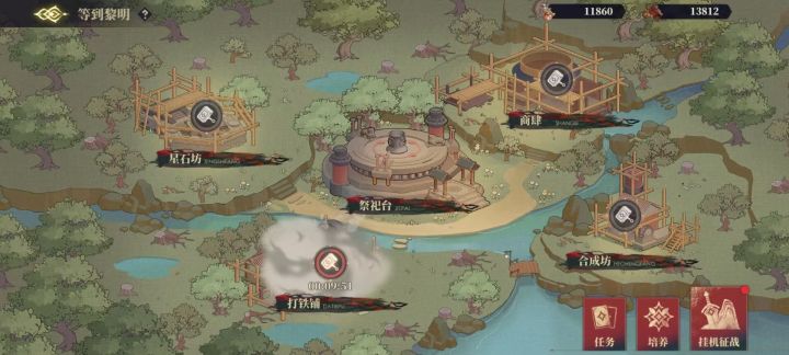 8、补充:(1)每个建筑的开启需要花费一定的时间,商肆为四个小时,其他建筑均为两个小时。(2)在下线之前尽量把自己的征战关卡打到较高层,其次,一定要确保自己的贝币和星石矿充足;避免因为资源不足导致武器,防具,星石等无法打造,导致长时间卡关