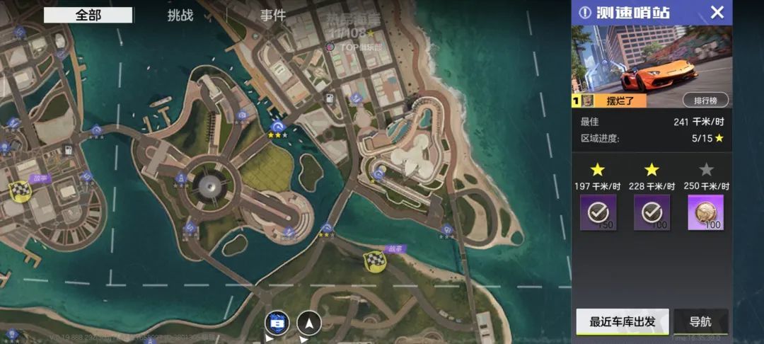 据官方表示,热湾区大约有1亿平米,而《极品飞车:集结》在根据排位等级划分的四大区域中,在城市及山野间各处角落放置有各类挑战玩法和待解锁事件。