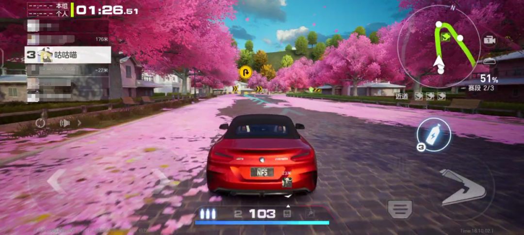 主观体验来看,虽然初次上手有些手忙脚乱,但挺“爽快”。如玩家在漂移过弯时,既可盯准漂移角度在绿区时,从脚刹按钮“滑动”至油门,触发“油门弹射”。同时玩家也能待漂移角度在绿区时,点击脚刹后,再从氮气按钮“滑动”到油门,借助“增压氮气弹射”快速出弯。而在落地时,玩家也可借助“油门弹射”技巧获得落地加速。