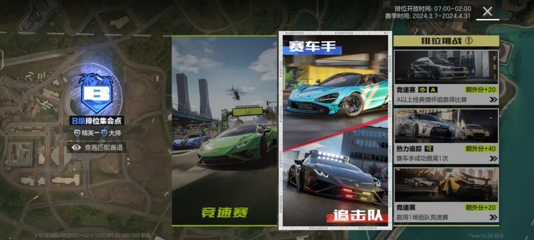 比赛玩法分为竞速赛和热力追踪。首先聊聊竞速赛,《极品飞车:集结》根据不同排位等级将地图划分为不同区域,解锁相应区域后,玩家便可前往集会点参加比赛。