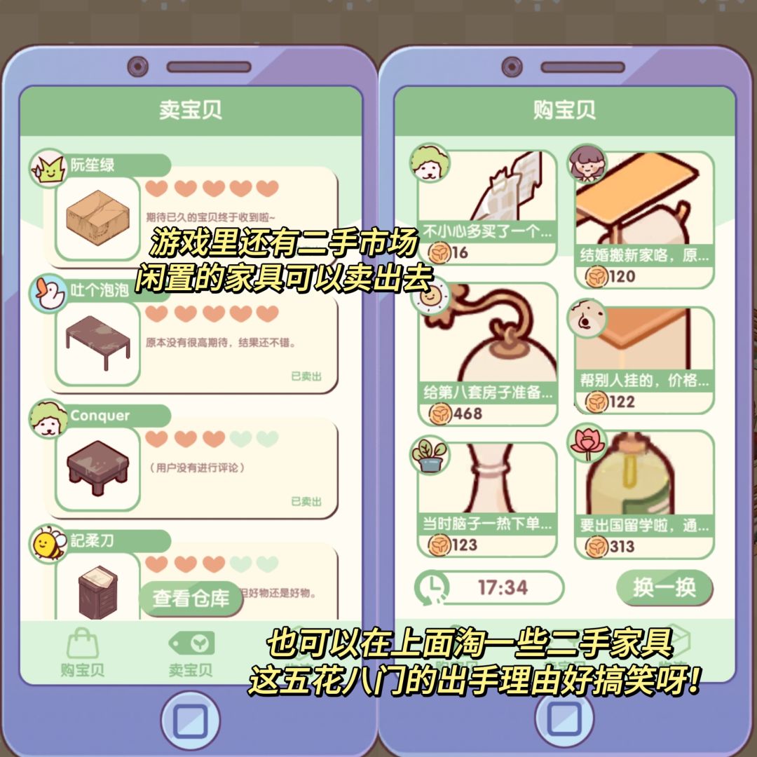 ✨超多种装修主题风格,数百种家具,还有家具染色功能!可以随心装扮自己的温馨小窝~