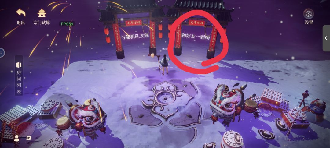 很多人进入之后迷迷糊糊,找不到游戏入口,去点了左上角的宗门试炼,宗门试炼是其他作者的游戏,我们的游戏是直接移动人物进入门内,如图所示。