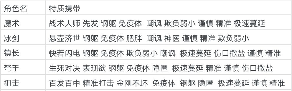 全员特质如p8,理想毒队的特质不适应其他模式,该图特质为尽量协调的结果。