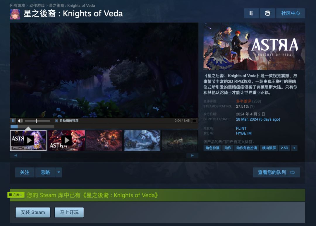 《星之后裔:吠陀骑士》Steam页面