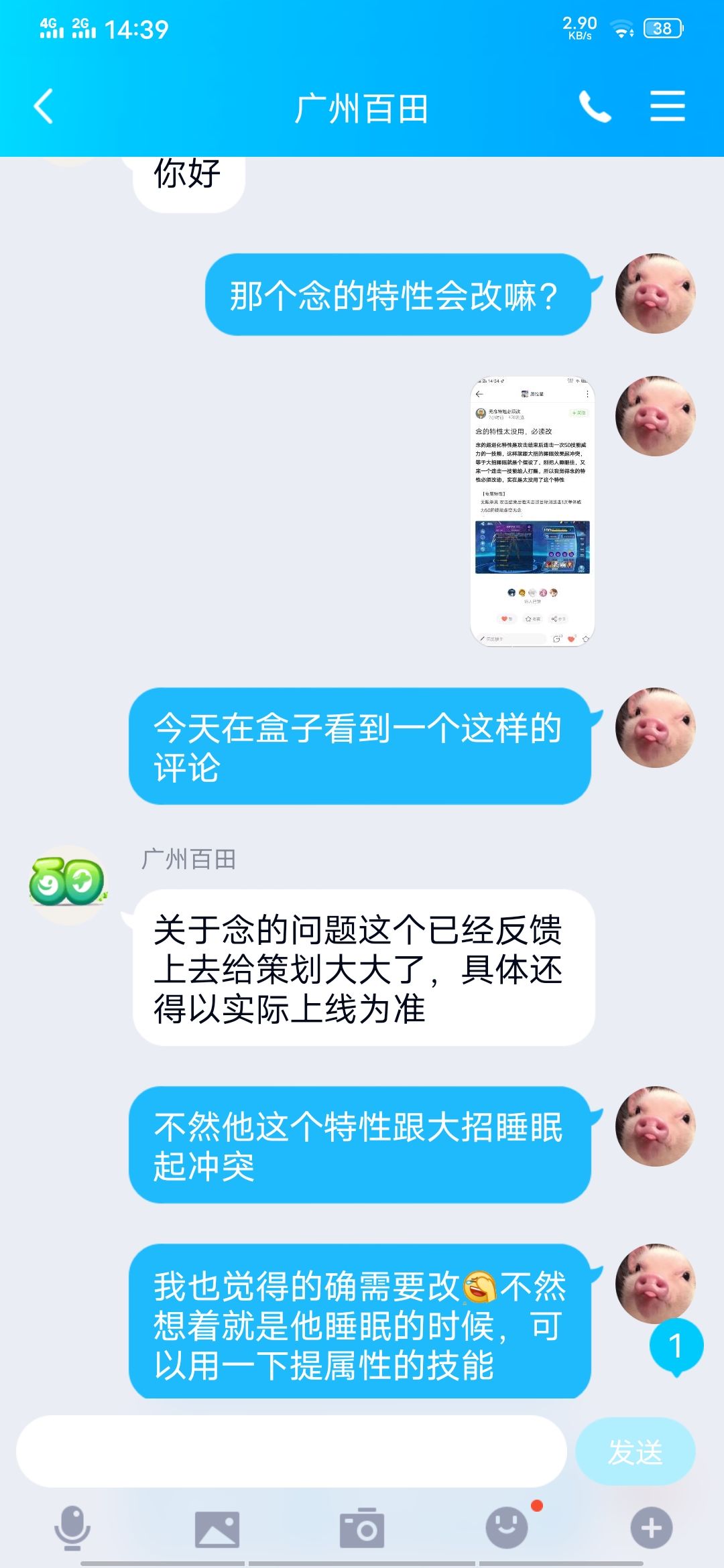 念的特性会改嘛?念超进化的特性跟大招睡眠起冲突,大招睡眠以后他还会连击一个一技能,这样就会把大招的睡眠效果打断,希望能改吧,加大力度反馈