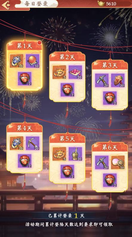 活动期间内,游戏内累计登录天数达到要求可领取对应的奖励。(假期一定要上线薅羊毛!)