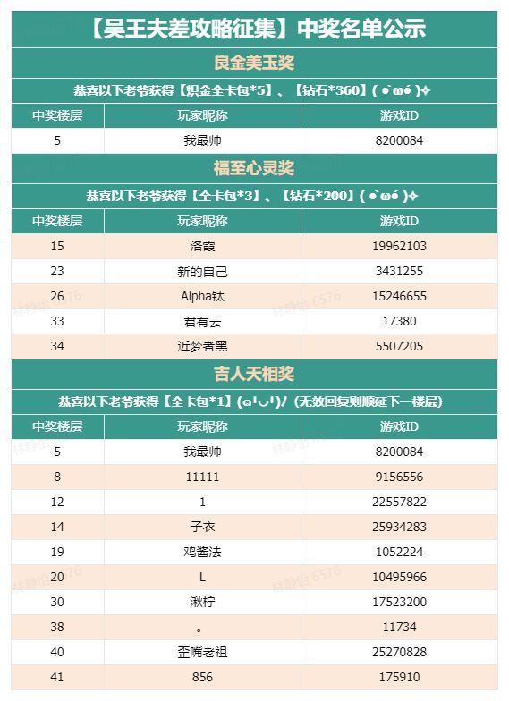 感谢大家的热情参与,中奖名单新鲜出炉啦!