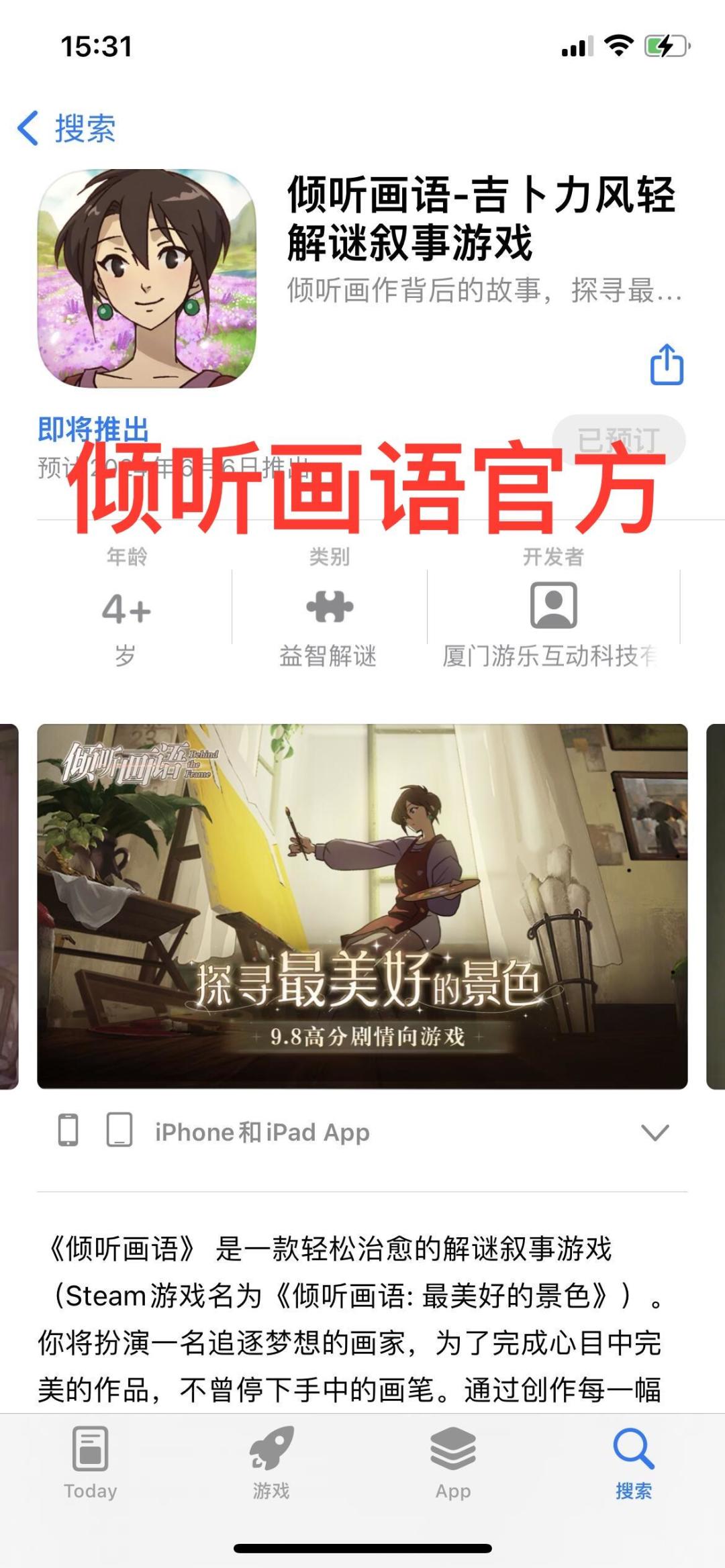轻度解谜叙事游戏《倾听画语》现已开启iOS端预约!