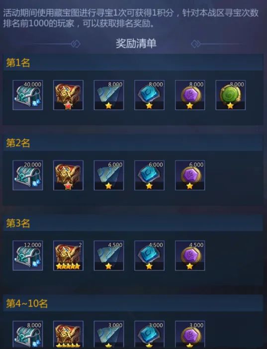 1.活动期间,消耗藏宝图寻宝,有机会获得丰厚奖励。