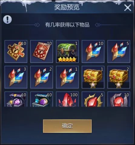 秘境寻宝奖励丰厚,有机会获得:五星英雄万能碎片、英雄召唤石、失落的圣物宝匣、宝箱、陨铁等其他奖励。