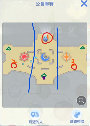 蓝色线划分区域,复活后2个选项太阳或者月亮,即2号位或1号位