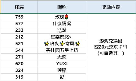 我们会从评论区随机抽取10位玩家,每人送出一份游戏兑换码(使用后可免费获得游戏)或者20元京东卡*1(两个奖励可自选其一)~