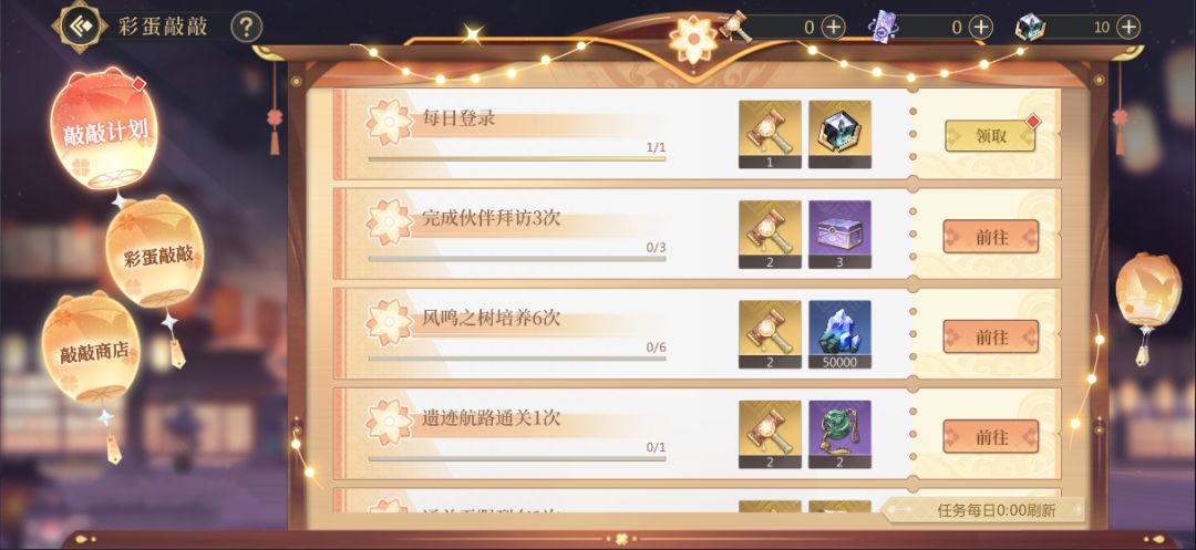 在本次敲敲计划中,楼主们只需要完成计划中的任务即可领取对应的道具奖励哦,其中获取的道具“敲敲锤”可前往【彩蛋敲敲】中敲开彩蛋获得更丰厚的奖励~每日最高可获得15个敲敲锤哦~