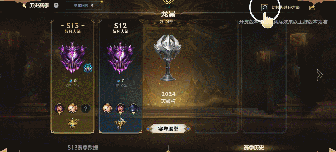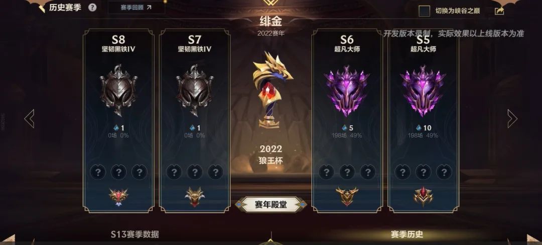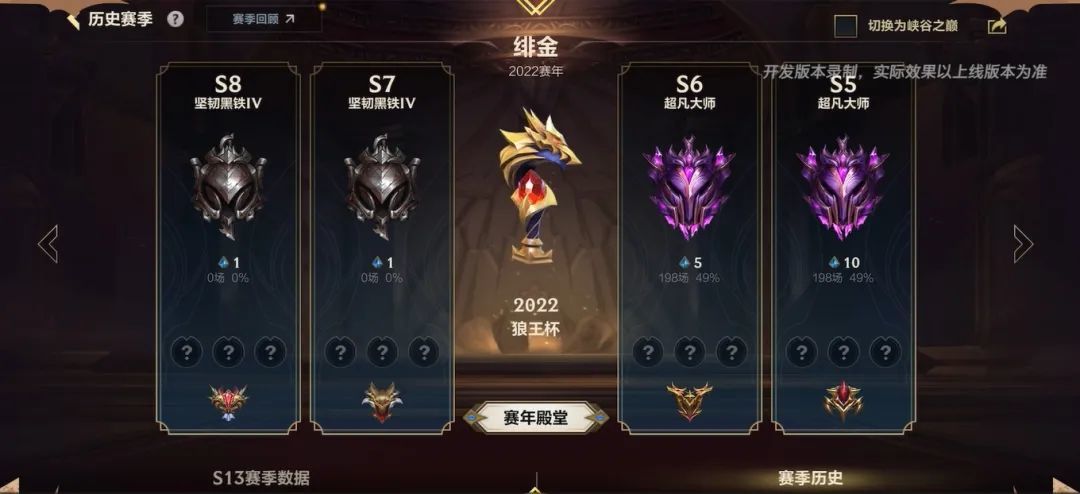 点击不同的赛年,可显示对应的赛年内容,而在赛季信息板中,将显示该赛季达到过的最高段位图标。
