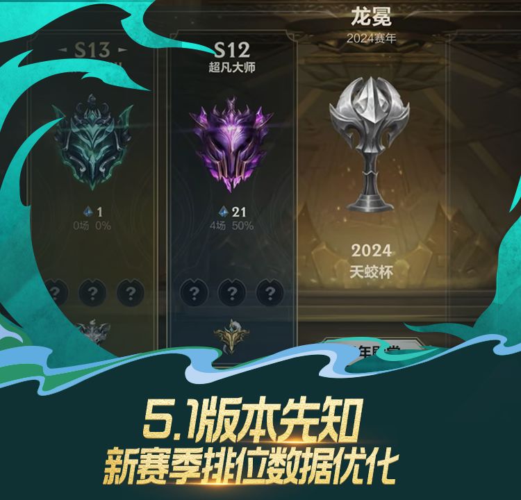 隆哥积极爆料,版本消息来报!5.1新版本中,排位数据得到了进一步的优化,信息整合,经验总结,在新赛季对齐“颗粒度”后,期待大家打出更多精彩的对局!