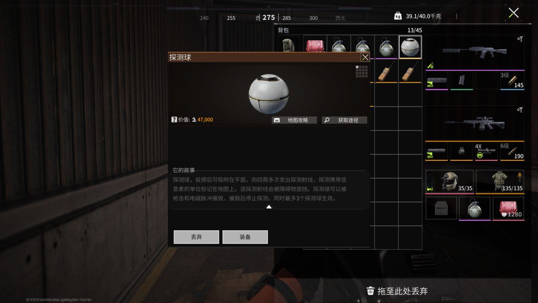 投掷在物品上可以吸附住,有较大范围的探测能力,探测到的敌人会显示在小地图上,但是不能穿透障碍物。所以探测球应该在较为空旷或者敌人频繁出现的场所使用,吸附在屋顶或者墙壁上,第一时间为玩家提供关键信息。