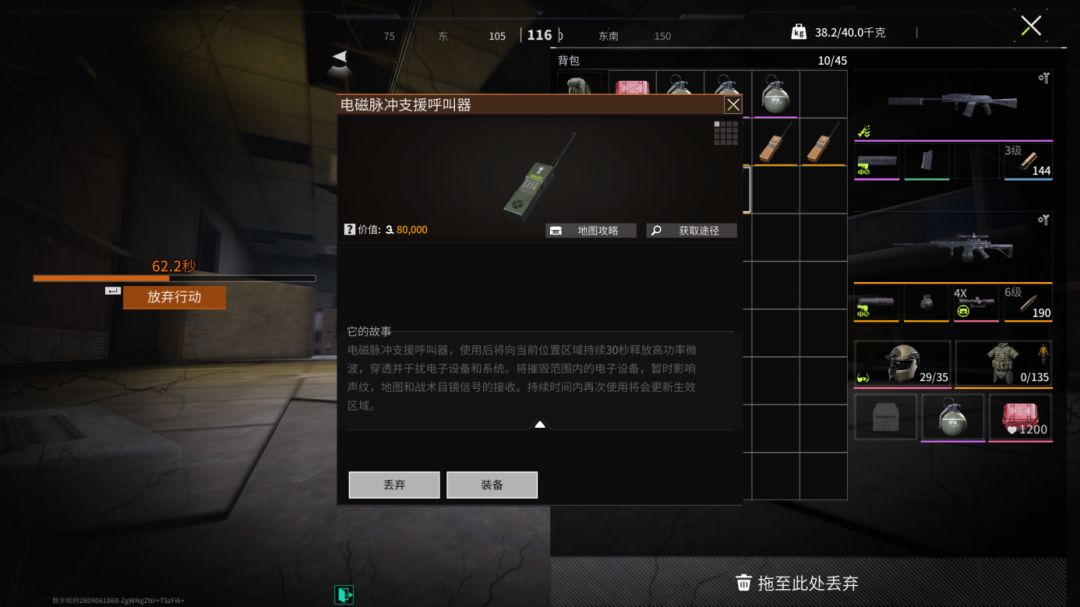 电磁脉冲支援呼叫器只会持续30s,是个用完马上要见效才有价值的道具,适合对抗时干扰对手和探测信息使用。