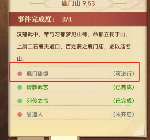完成任务后,解锁鹿门山事件:鹿门秘境