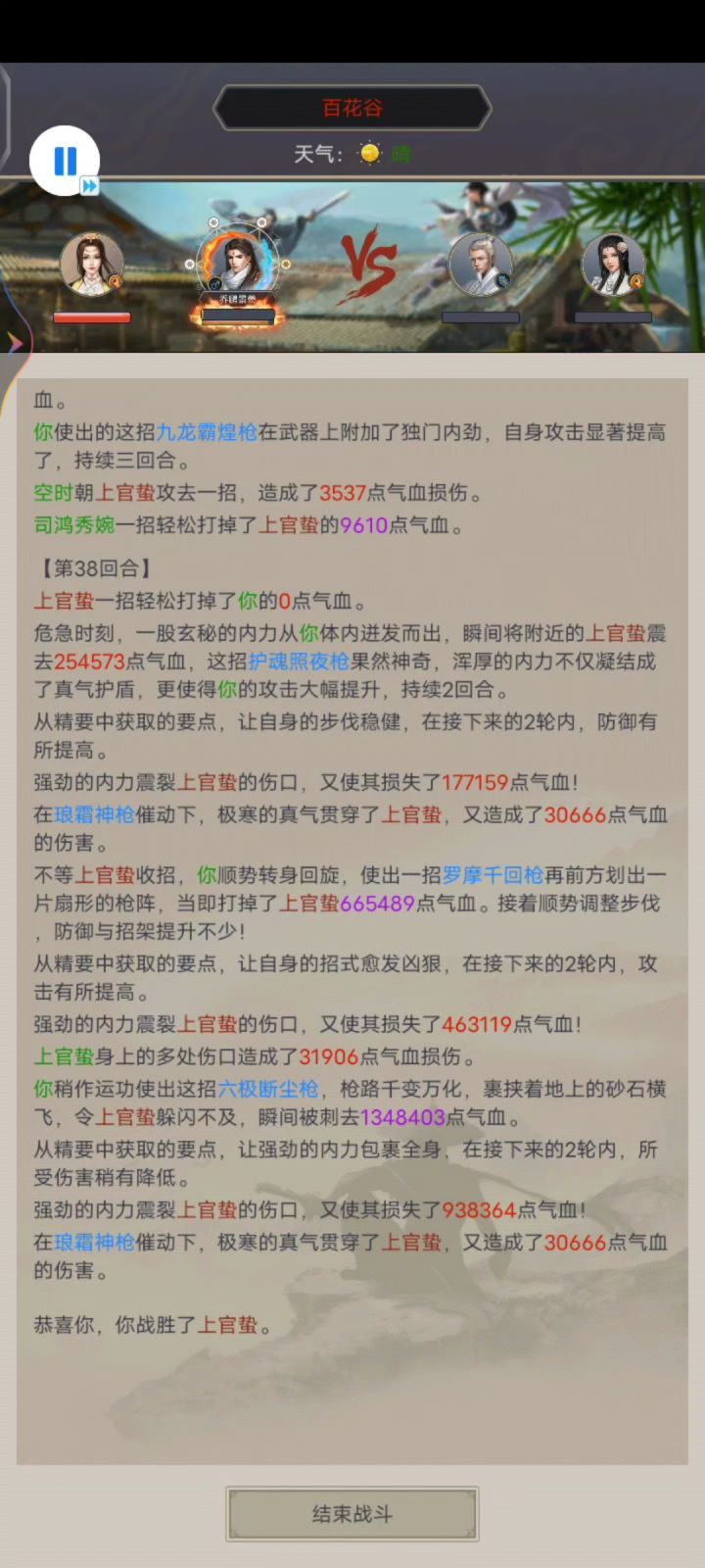 所以六绝阵buff选最暴力的三钝器 攻击 重防 重创伤害 天气晴天和阴天都可以。我选的晴天,不仅加攻击还能减少上官的闪避。随从选拳就行 暗器孔雀
