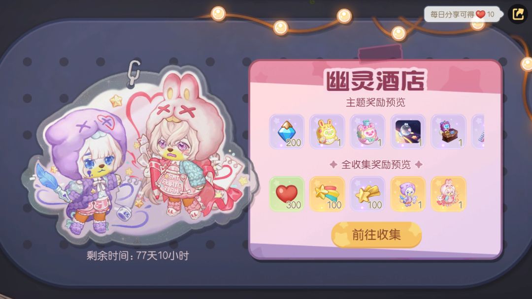 上线时间:4月3日维护结束后,「幽灵酒店」收集季开放时间为4月3日5:00-7月1日23:59