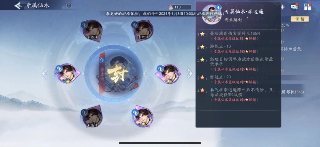 等级三:真气在李逍遥阵亡后不清除,且每层提供3%减伤