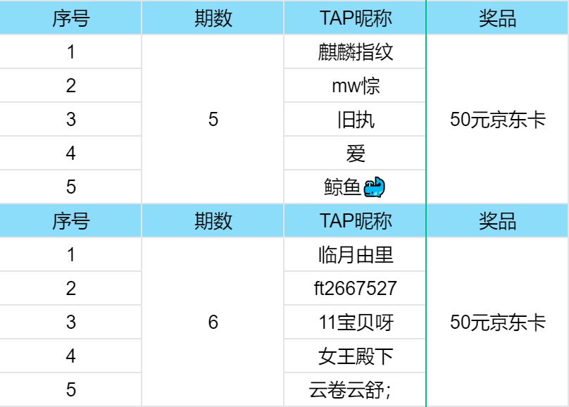 第三、四期的每日任务挑战获奖名单来啦~![[嗒啦啦4_好耶]](https://img.tapimg.com/market/images/d378b7a8f38cae2d3dfb6170d918238b.gif)