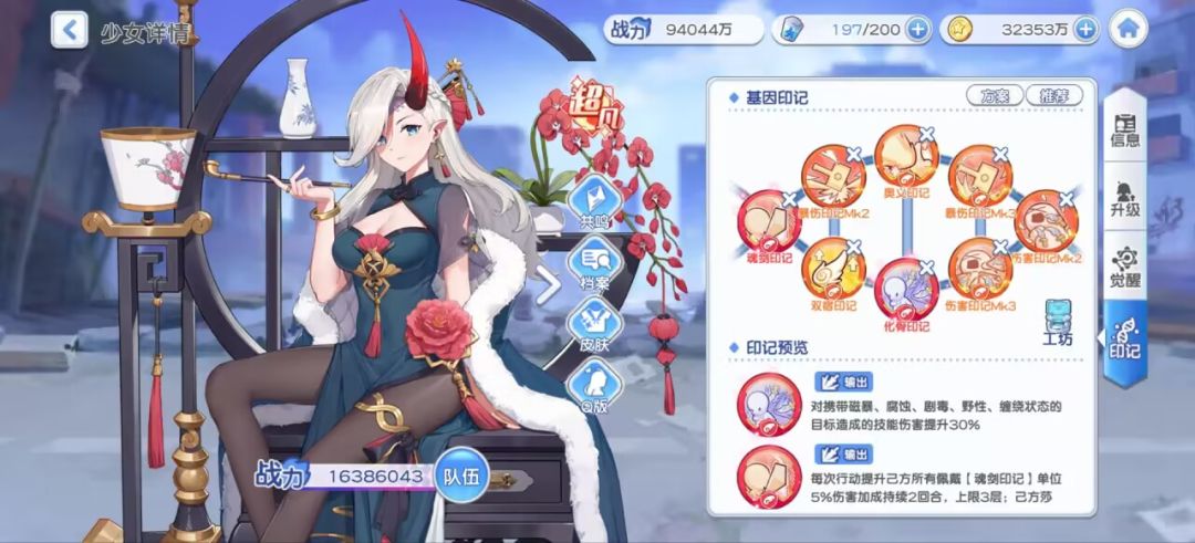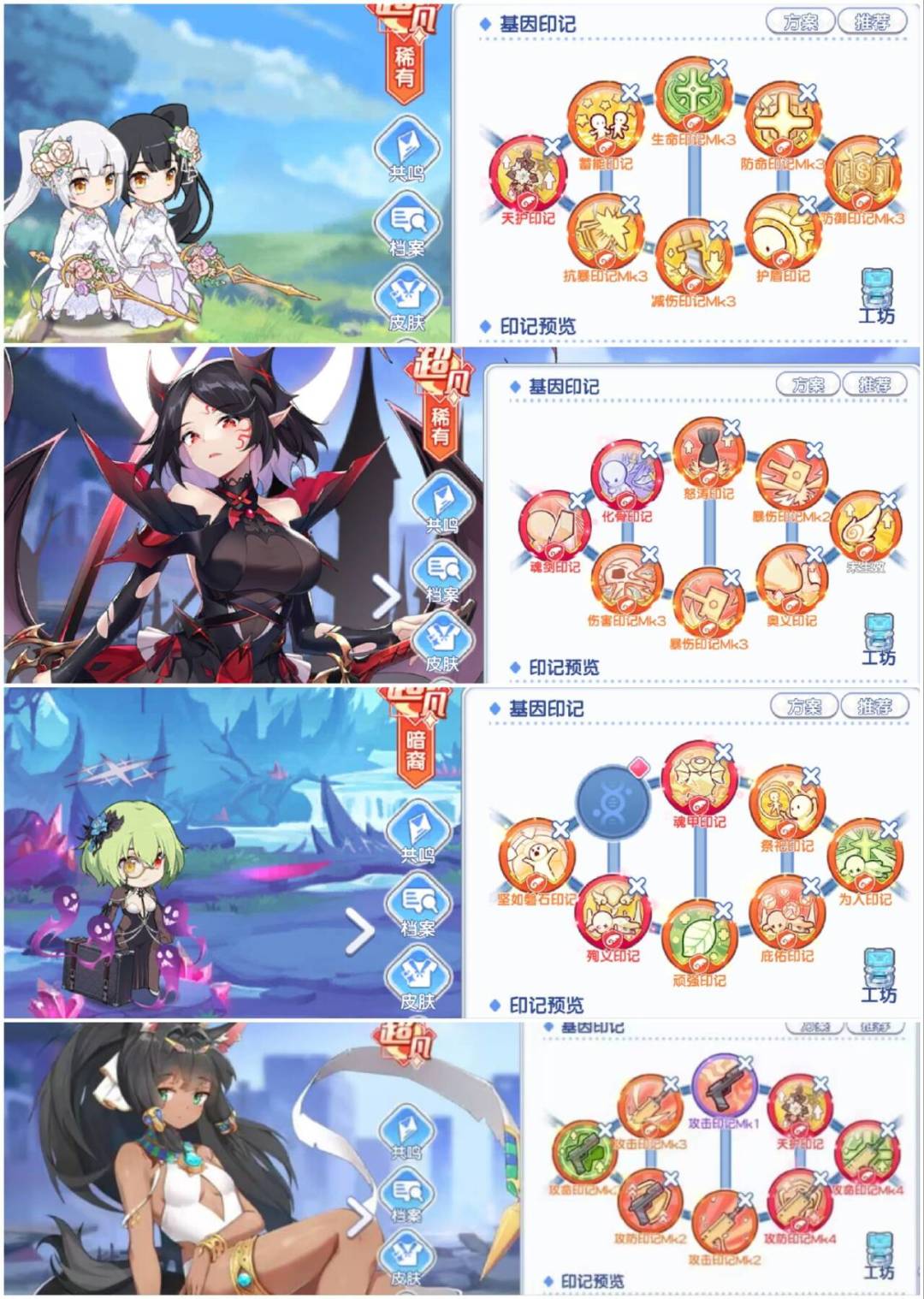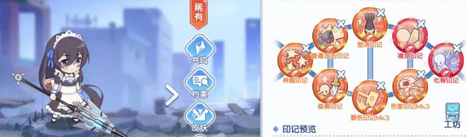 印记这边单体辅助少女一律全攻击印记,emmm,【顽强印记】可以不带。