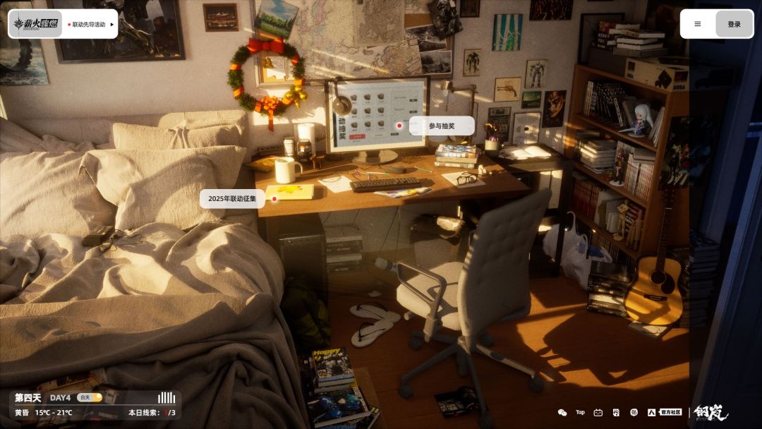1.在房间内寻找其他IP相关线索物件;联动专题站共有四个天数篇章,每个篇章分为昼夜两个场景,共包含三条线索,找齐当前天数篇章三个线索后,可进入下一个天数篇章;