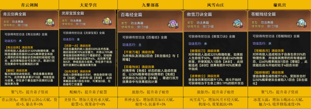 同时也附带着其宗门商店可兑换提升弟子六维和增加的弟子天赋的道具效果,其中的青云剑阁提升弟子资质的聚气丹和添加暴击率的天赋青云剑心的实用价值会更高哦,当然祖师主要还是根据自己想要功法和天赋情况进行进一步选择赠礼顺序。