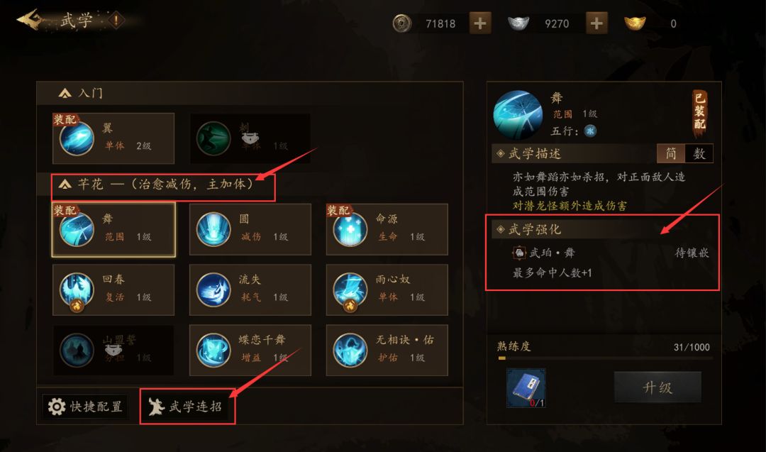 2、武学描述下方新增武学强化,明确武珀镶嵌
