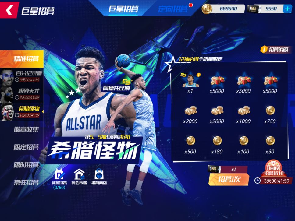 新增幸运转盘折扣!活动期间,可使用【精准招募函】在【精准招募-希腊怪物】池中,招募全明星队阿德托昆博。