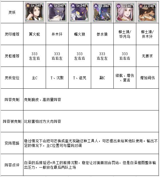 )明确了以上内容,我们以T0和T1级别的C位灵妖作为队伍核心,为其配置合适的队友构建体系。