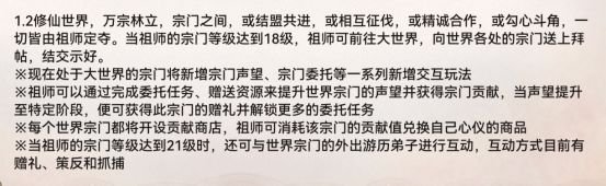 👉可以看到这是官方发布的更新公告 有道友之前总是觉得世界玩法太少 跟其他世界宗门没有办法互动 这一期官方也是做出了反响 把世界宗门的互动做出来了