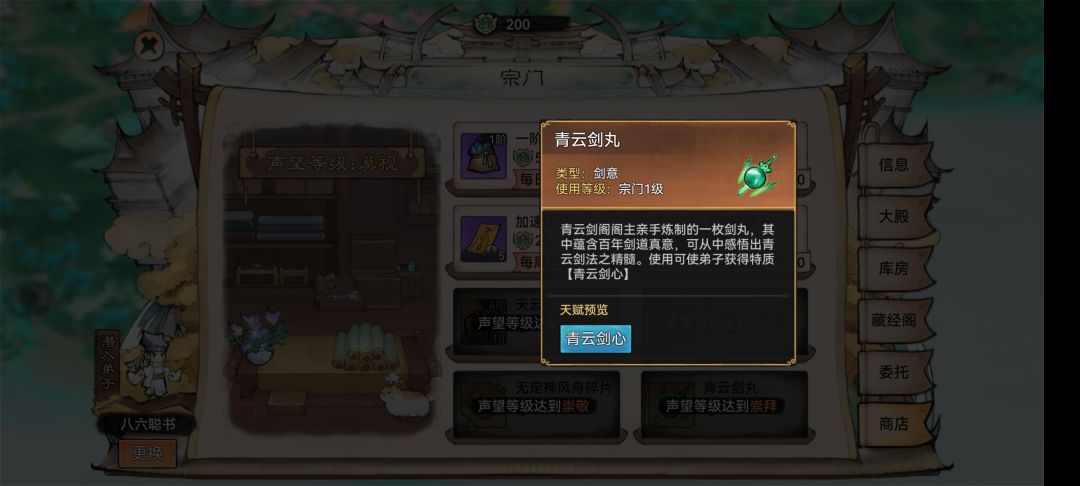 有了极品弟子和功法后可以再看看其他宗门有没有自己想要的物品,再慢慢增加声望