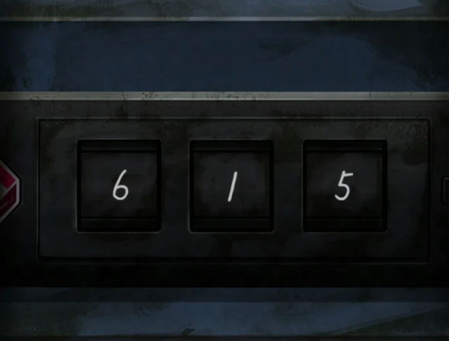 查看白色架子最下层有个工具箱,说明什么看了也没用还是需要找线索,就在同一个架子的右上角有个木盒子,注意打开小高能,打开后看到僵尸小人身上写着615,三位数字线索肯定就是下面工具箱的了,调整工具箱密码到615打开工具箱拿到螺丝刀。