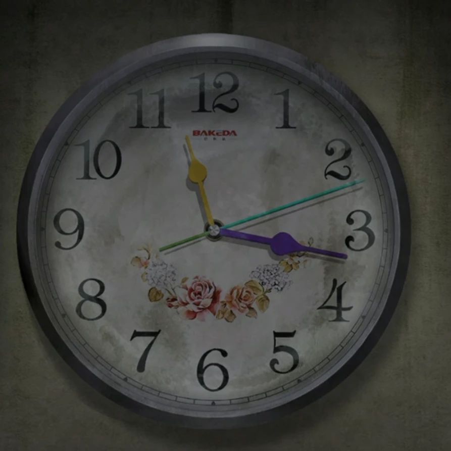 又有个很容易漏掉的线索,就是在吧台场景,左侧门的上面有个表,之前以为是背景画面都没点过,直到卡关米雪才点点点找到了,表盘上指针方向不同,记下来左上角黄,右上角蓝,左下角绿,右下角紫,看来这就是吧台柜子的线索了。