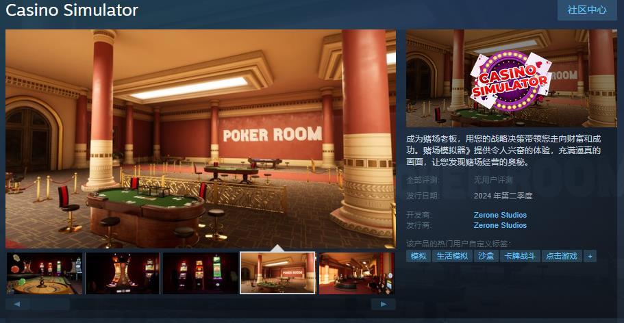 今日(4月3日),模拟经营游戏《赌场模拟器》Steam页面上线,游戏支持简体中文,预计于今年第二季度发售,感兴趣的玩家可以