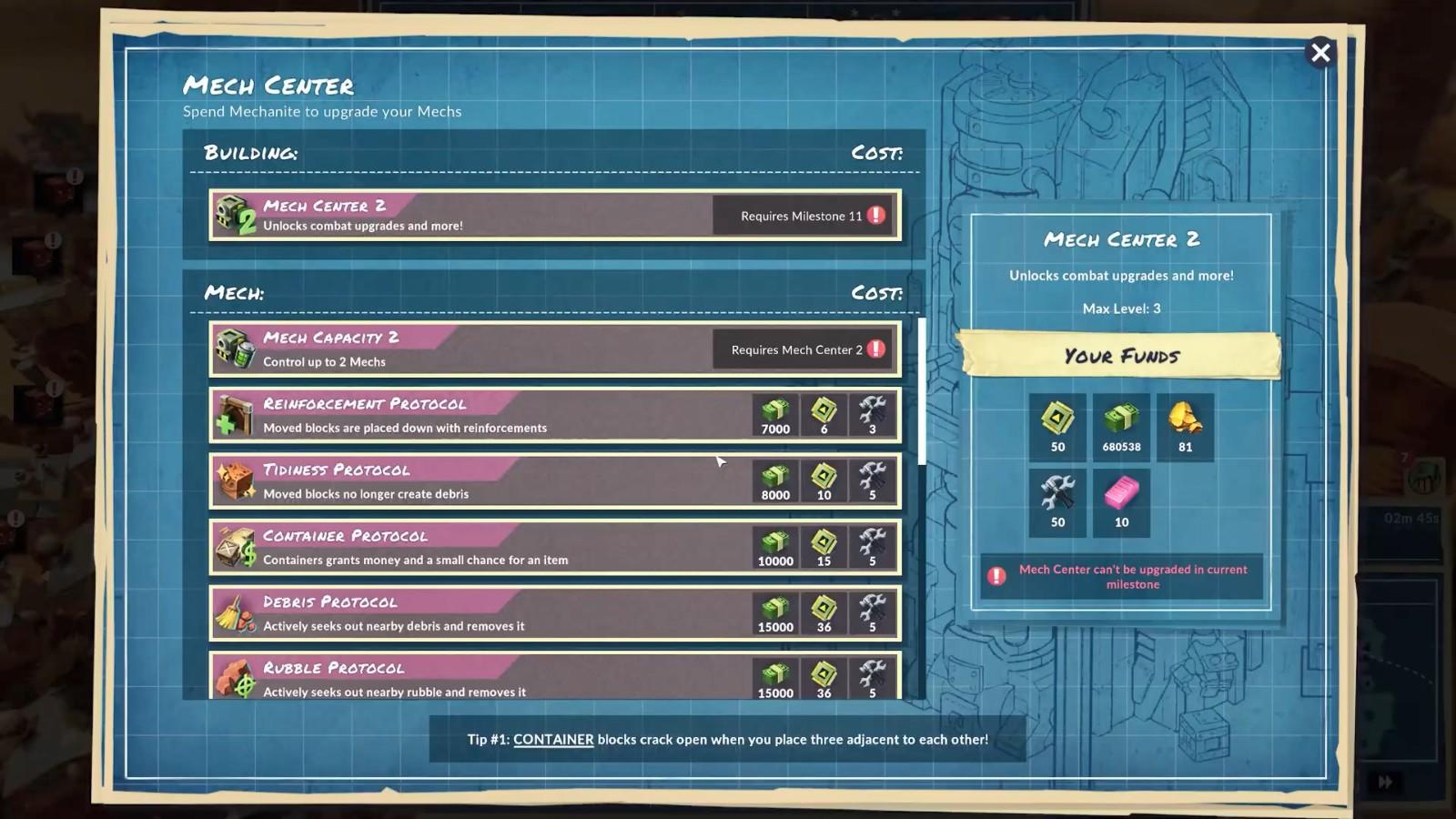 这座建筑是玩家获取独特机甲升级的地方,这些升级不仅能帮助它们在探索过程中通过清扫和举物提供协助,同时也能使机甲变得更加强大,从而更好地应对隐藏在地底深处的更多威胁。