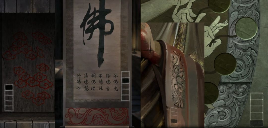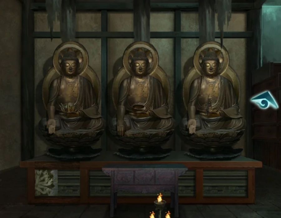 俗话说解铃还需系铃人,这系铃人怎么跑的这么快!总之最后探佛塔,这里先说一句场景都是在塔里的,所以我们直接用第几层来称呼,第一层叫三佛像,第二层叫一堆佛,第三层叫木柜子,第四层叫塔楼,最上面叫棺材,后面小伙伴们注意是哪一层的解谜不要跑错位置哦!